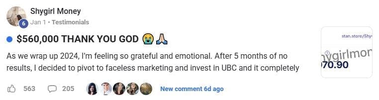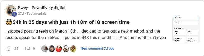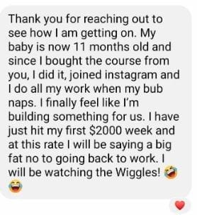 I paid off the course before I even finished it. I got my first sale on the second day of launching my faceless Instagram account. And just 25 days in, I’d made over $8.5K. 9 weeks in I have made over $16K.
