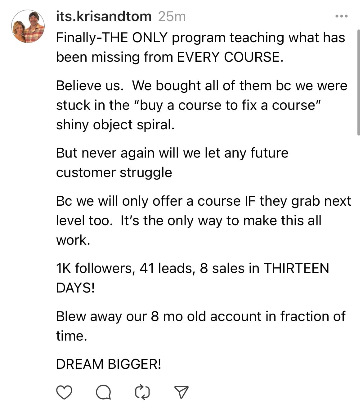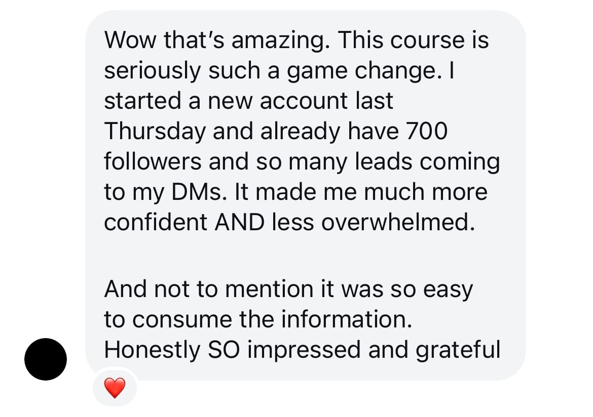 This is KEY because the application of this course is going to drive leads into your DM's asking: